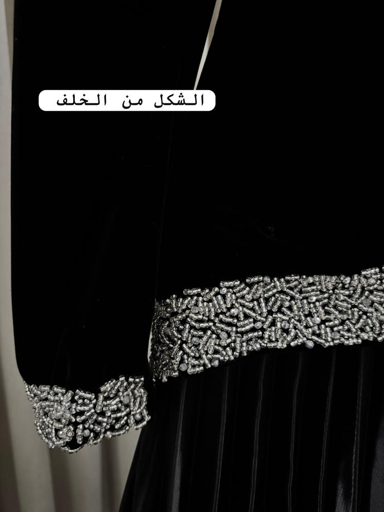 فستان اسود فخم بخامه الجوخ / مطرز يدوي بالكامل