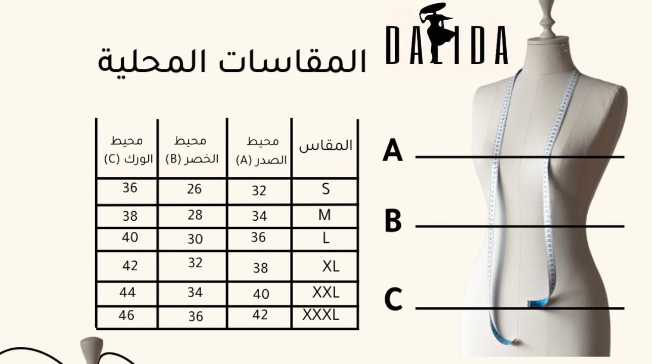 • دليل مقاسات متجر داليدا