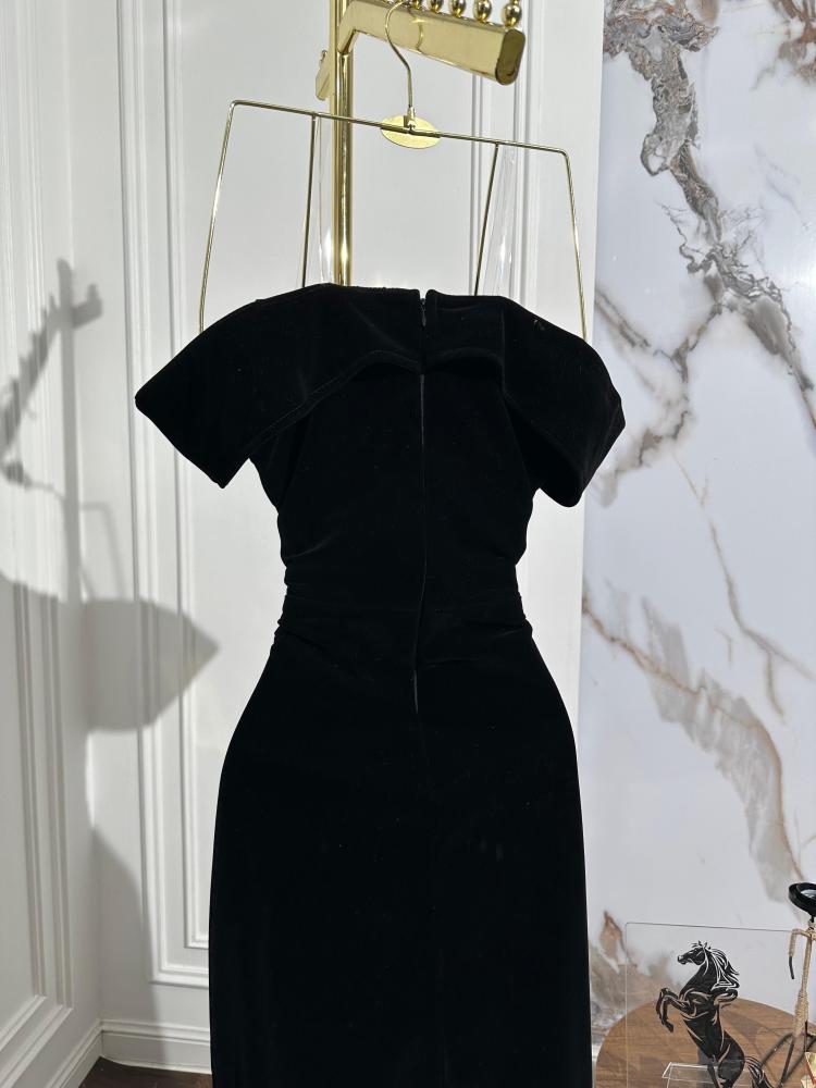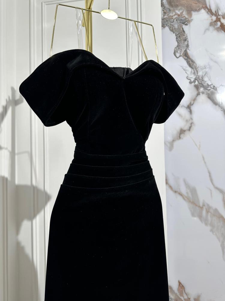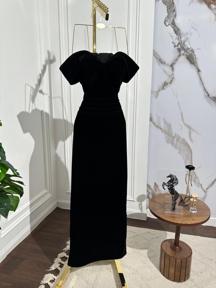 فستان شتوي اسود فخم بخامه الجوخ