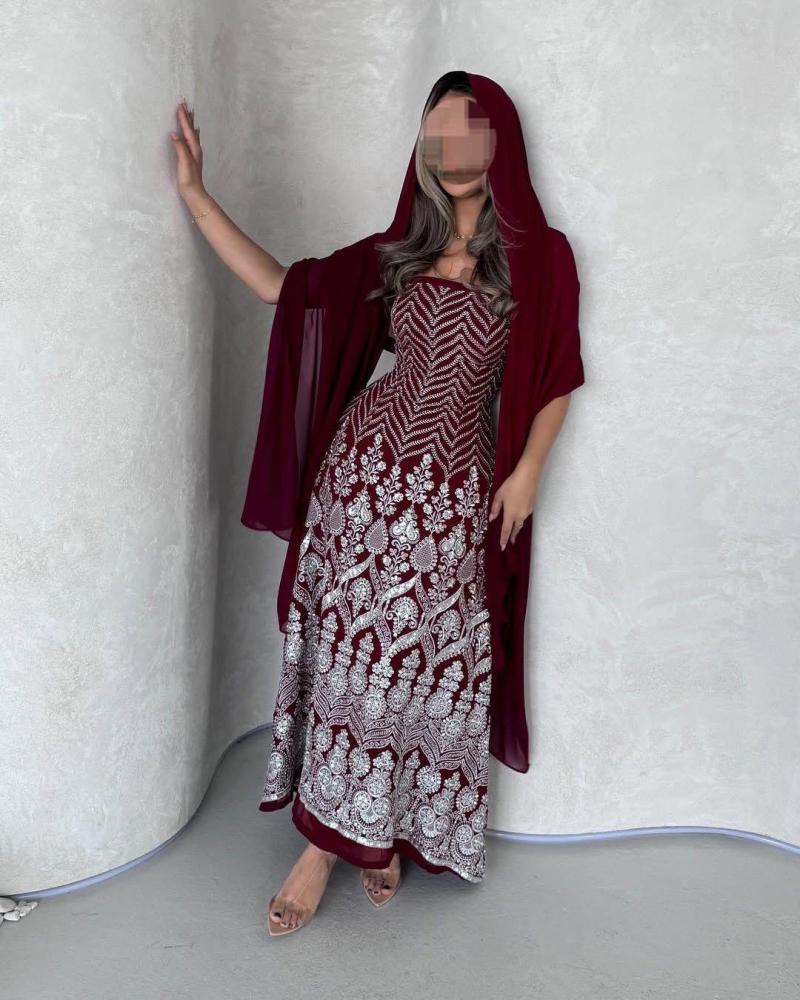 خامة الفستان : الجاكت والشال شيفون/ الفستان باربي /