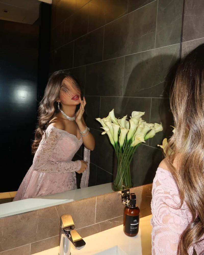 • خامة الفستان : دانتيل مبطن مع جيبون