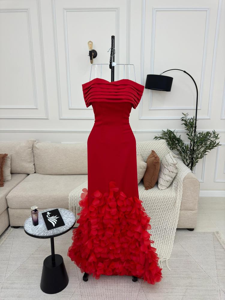 فستان سهره انيق لونين زيتي+ احمر 0067
