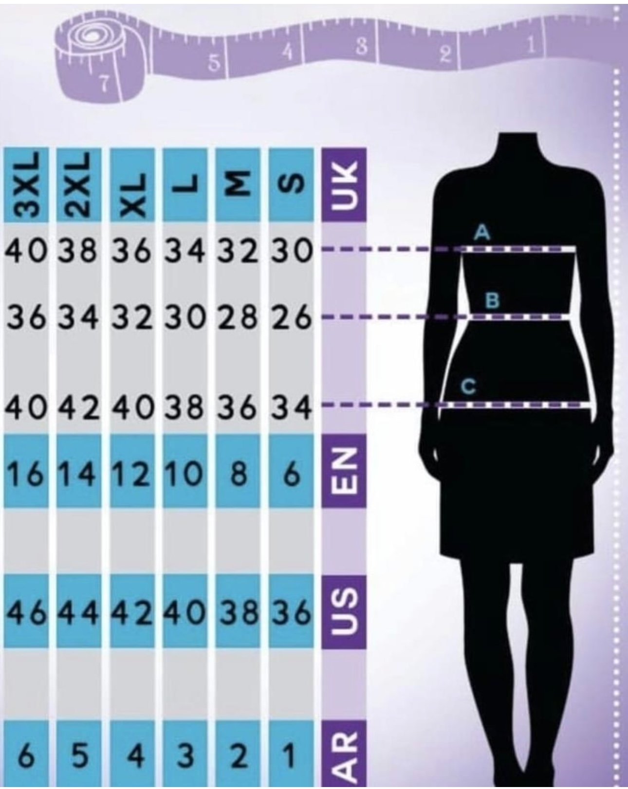 جدول المقاسات:-