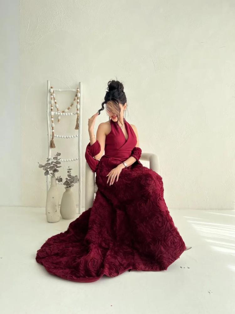 أبهري الجميع بإطلالة مميزة مع هذا الفستان البرقندي من داليدا ، يتميز بتصميم أنيق مصنوع من قماش التفتة الاسترتش مع كلفه ورود يضفي لمسة انسيابية تمنحك مظهراً فاخراً وجذاباً