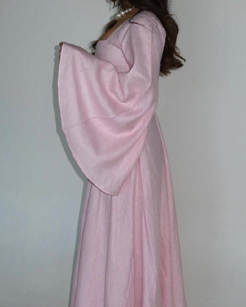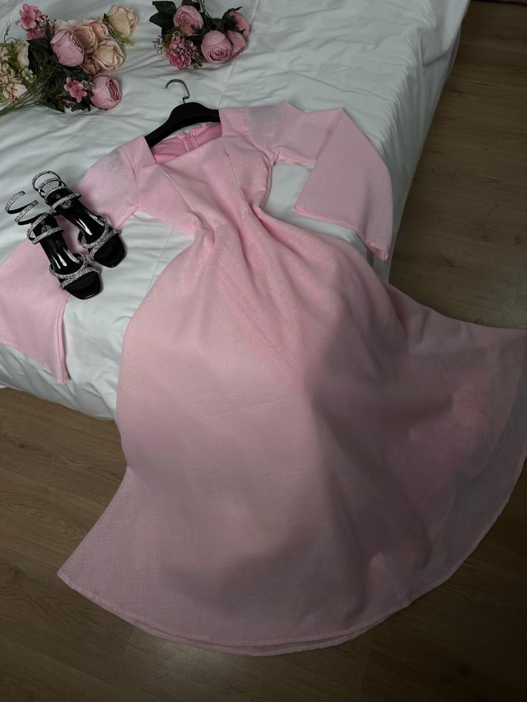 فستان كارمن بيبي بينك بخامه الينن الهندي مبطن
