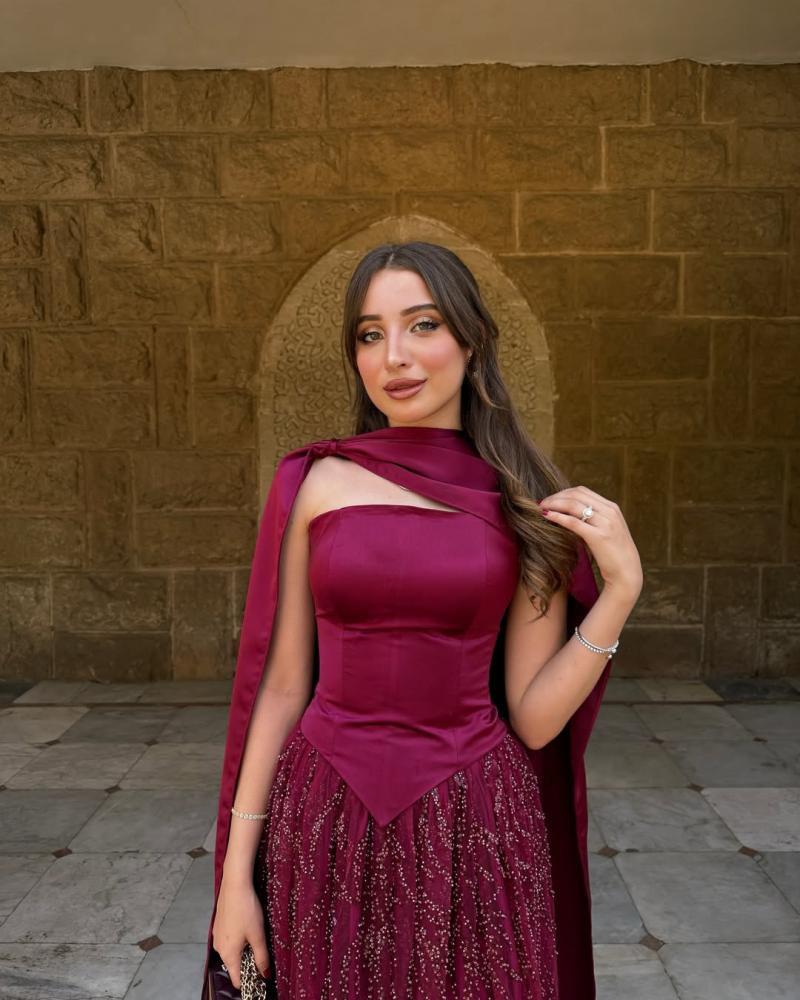 فستان “سحر العنّابي” بكلفه السهرات الفاخرة