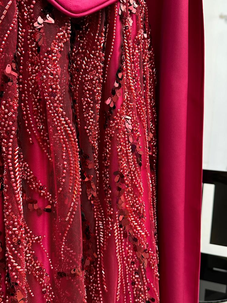 فستان سحر العنابي بكلفه السهرات الفاخره