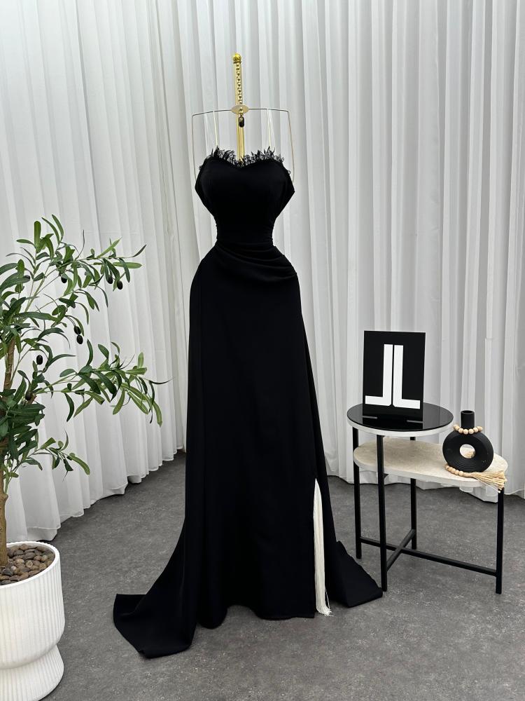 فستان ليل ونهار | أسود باربي دانتيل وهدب أبيض